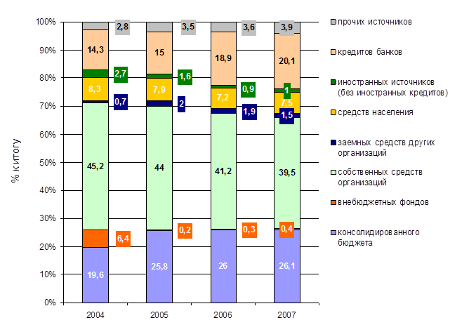 Рис.4. Инвестиции в основной капитал по источникам финансирования